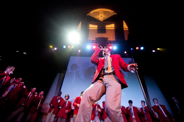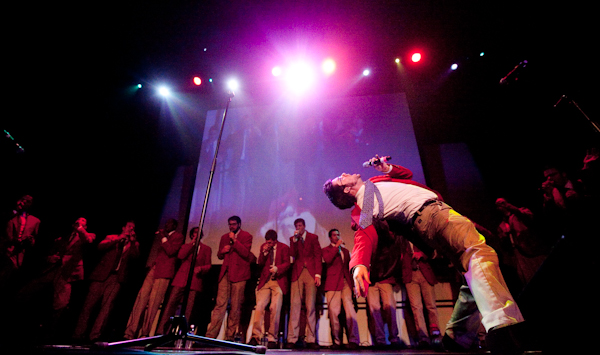 The second break was a little more my doing — when the group warmed up in the theater behind the main stage, the lighting was awful, and, since I’m an idiot and forgot my flash at home, I McGuyvered a spotlight to put light directly on them. Boom. Lighting problem solved.