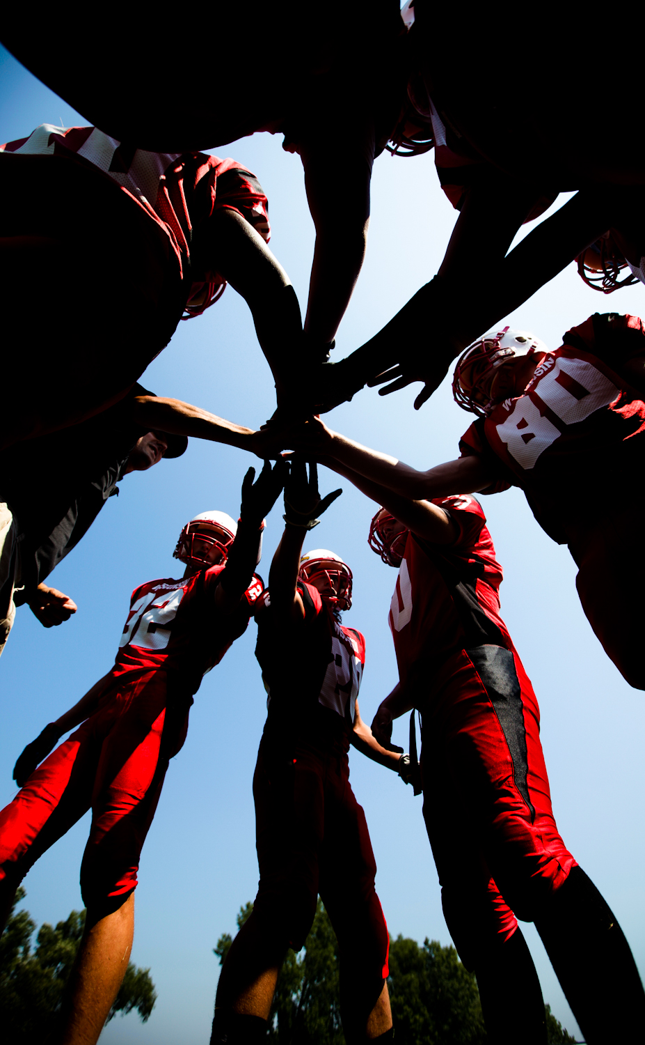 Challenging because the absence of noise is hard to convey visually. The games are, for the most part, completely quiet except for the colliding of football pads and the occasional grunt or two. Unfortunately, my camera can’t capture sound waves. Instead, what I’m focusing on is how the players and coaches communicate with each other. What I noticed immediately on the first day was the players and coaches use their facial expressions to make the noise for them. I don’t even need to know sign language to tell exactly the tone they are trying to convey.