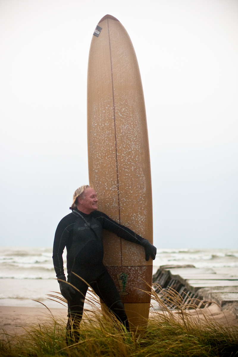 After I squeezed into my wetsuit (which is a story in itself, I assure you), my subject and I made a valiant attempt to get the surfing photo anyways. That didn’t work out at all, and I was beginning to think it was only a matter of time before I slipped and dropped my gear into Lake Michigan. So I cut my losses and decided to just do some portraits…