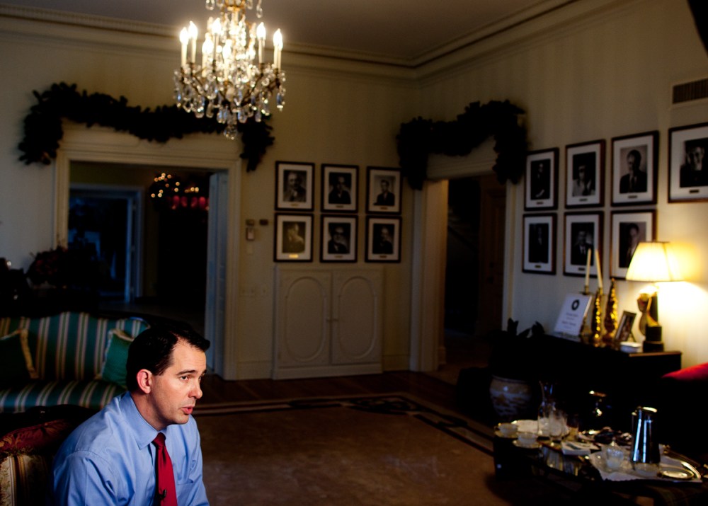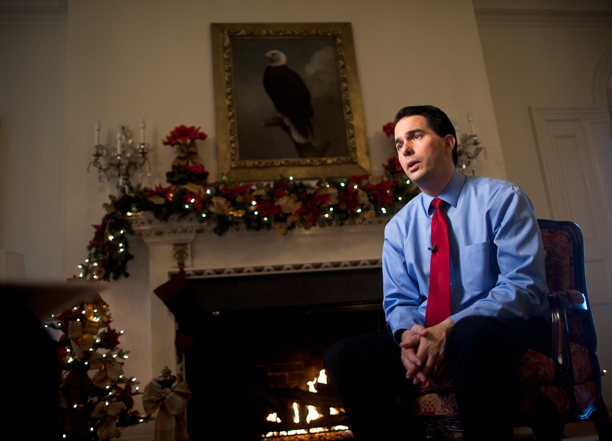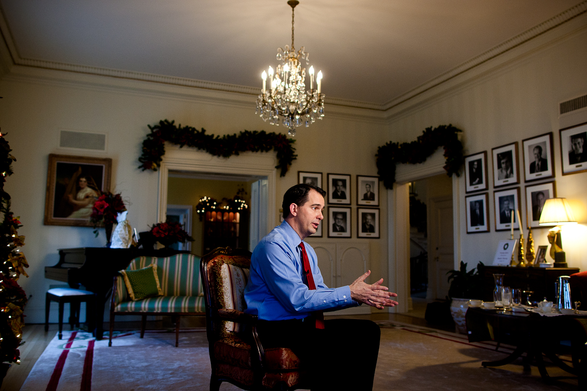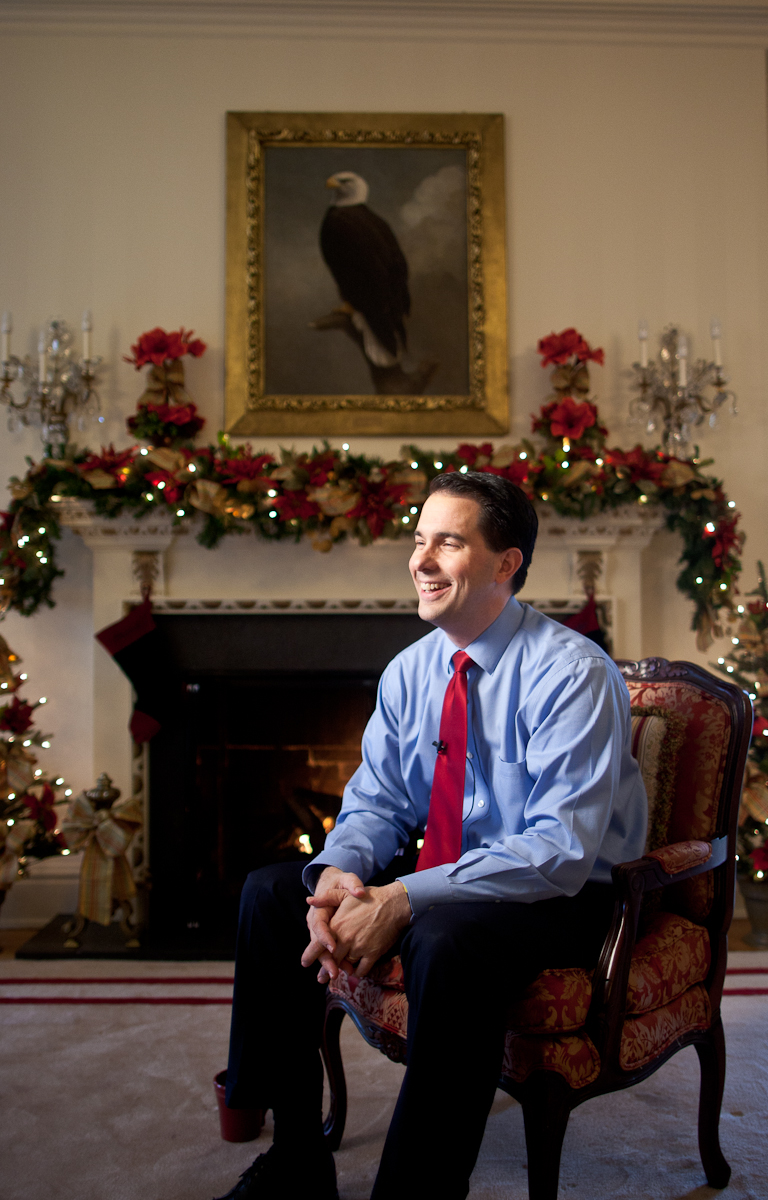 Today I got to photograph Scott Walker in his “home,” the executive mansion on Madison’s north side. Besides the somewhat gaudy Christmas decorations and prevalence of bald eagle portraits, the mansion was a pretty interesting place to shoot in.