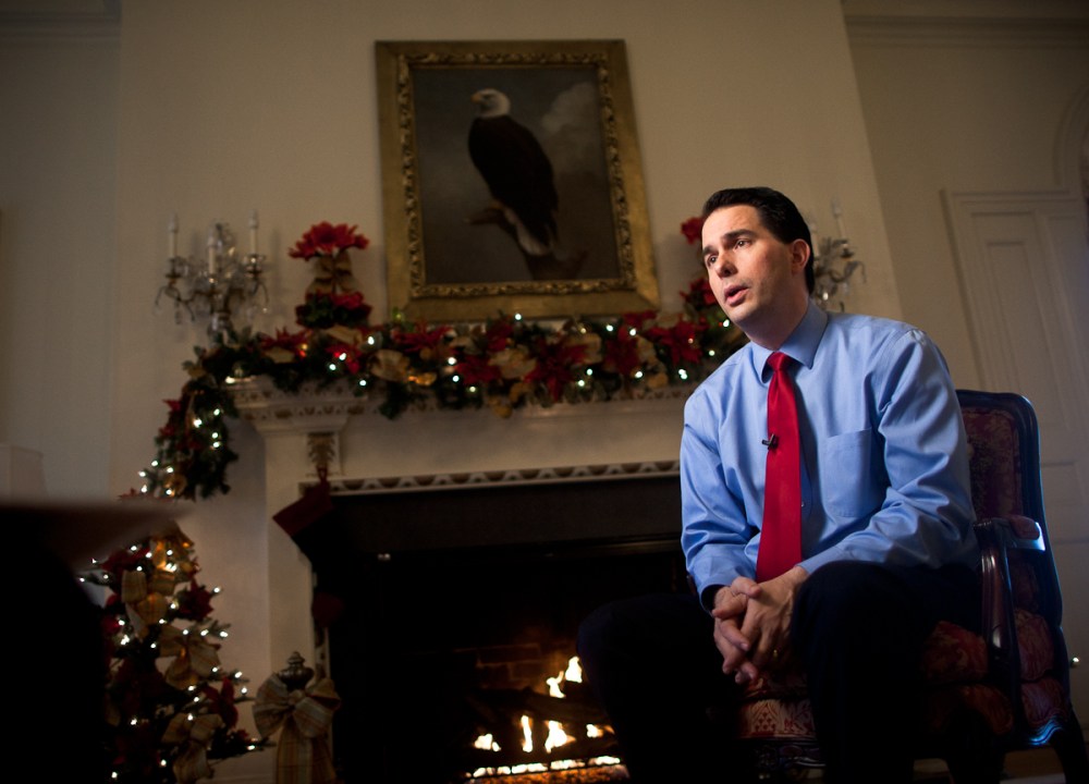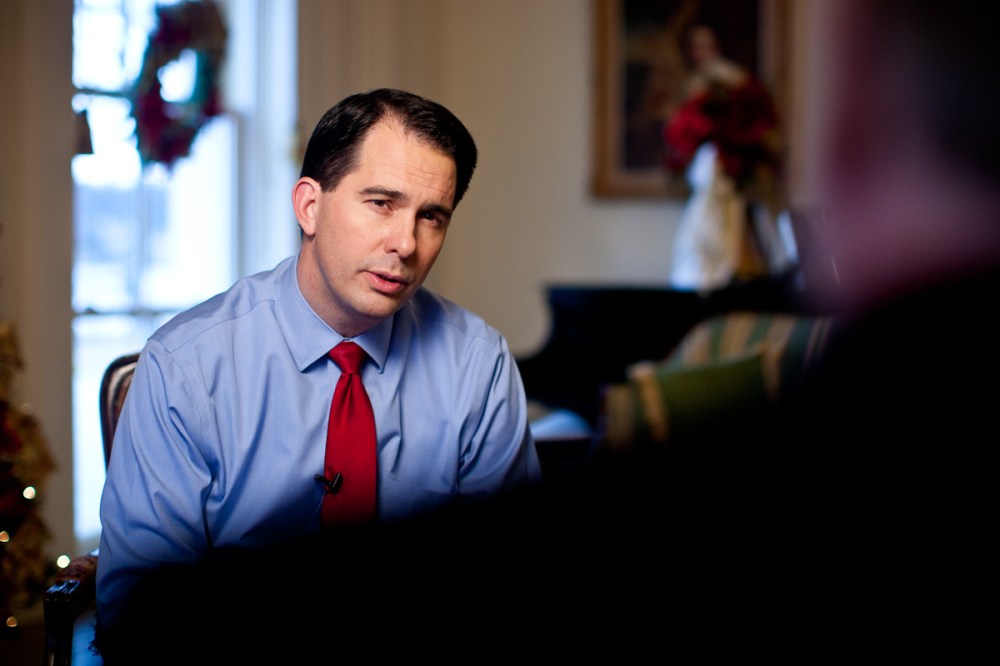 More or less Walker was hosting an FDR-esque fireside chat for media outlets to interview him privately for 15-20 minutes. I was called up by the Wisconsin Center for Investigative Journalism to do a few photos while they interviewed him. I was really thankful for the more intimate setting we were placed in. It allowed for me to be more creative and freely move around for different angles without worrying about being in someone’s shot.