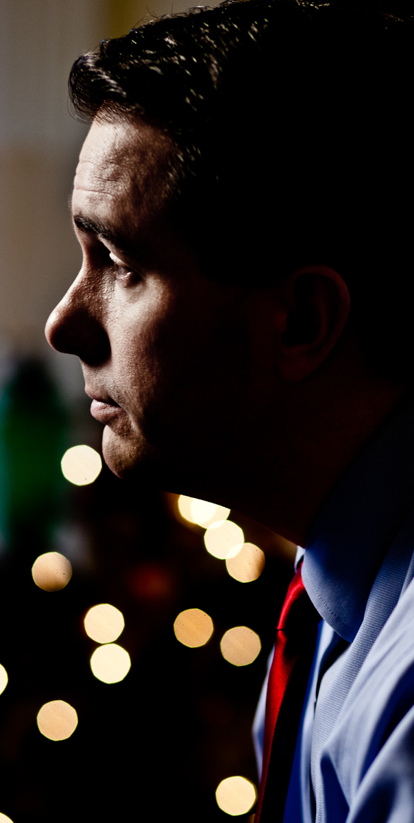 Considering the article that the Center is working on is sort of a year-in-review type piece, I wanted to get photos of Scott Walker that were reflective and telling. In shooting Walker before I knew this would be a challenge since he usually isn’t extremely animated in terms of facial expressions, and I wanted to do more than just hand gestures and talking.