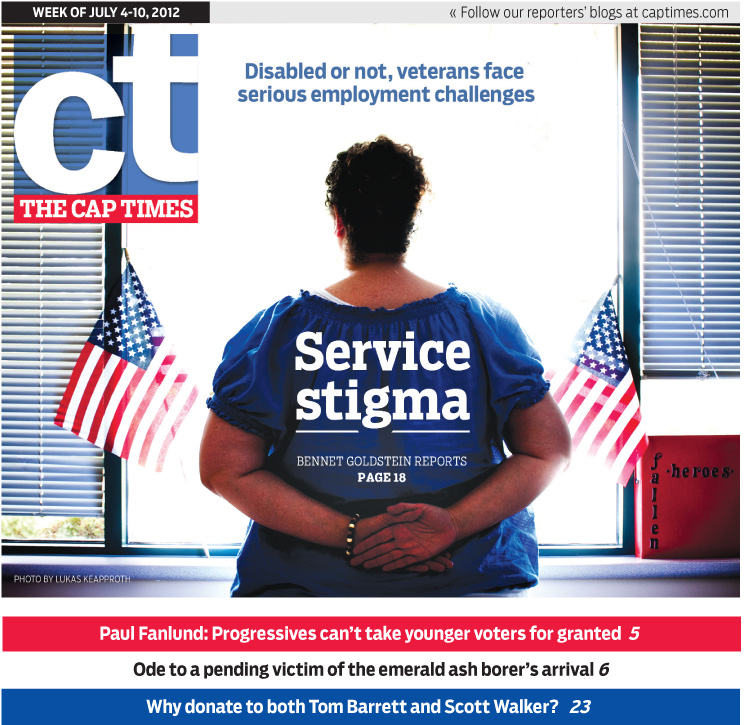 This week’s Cap Times features my photo on their front cover for a story about employment challenges facing returning veterans.