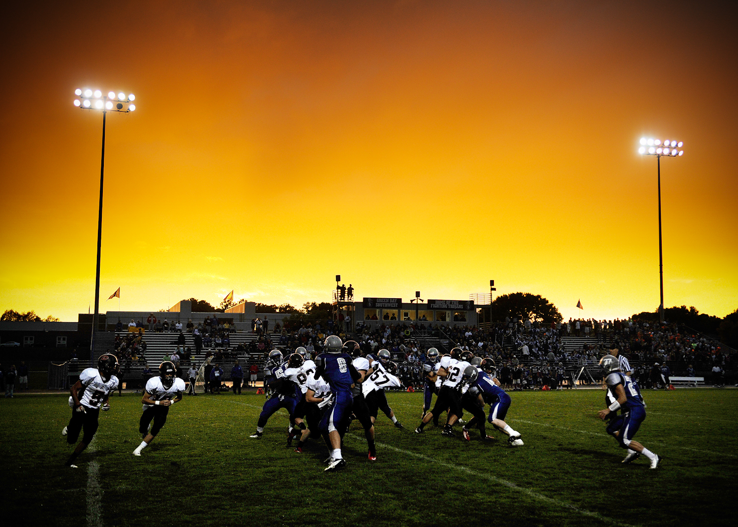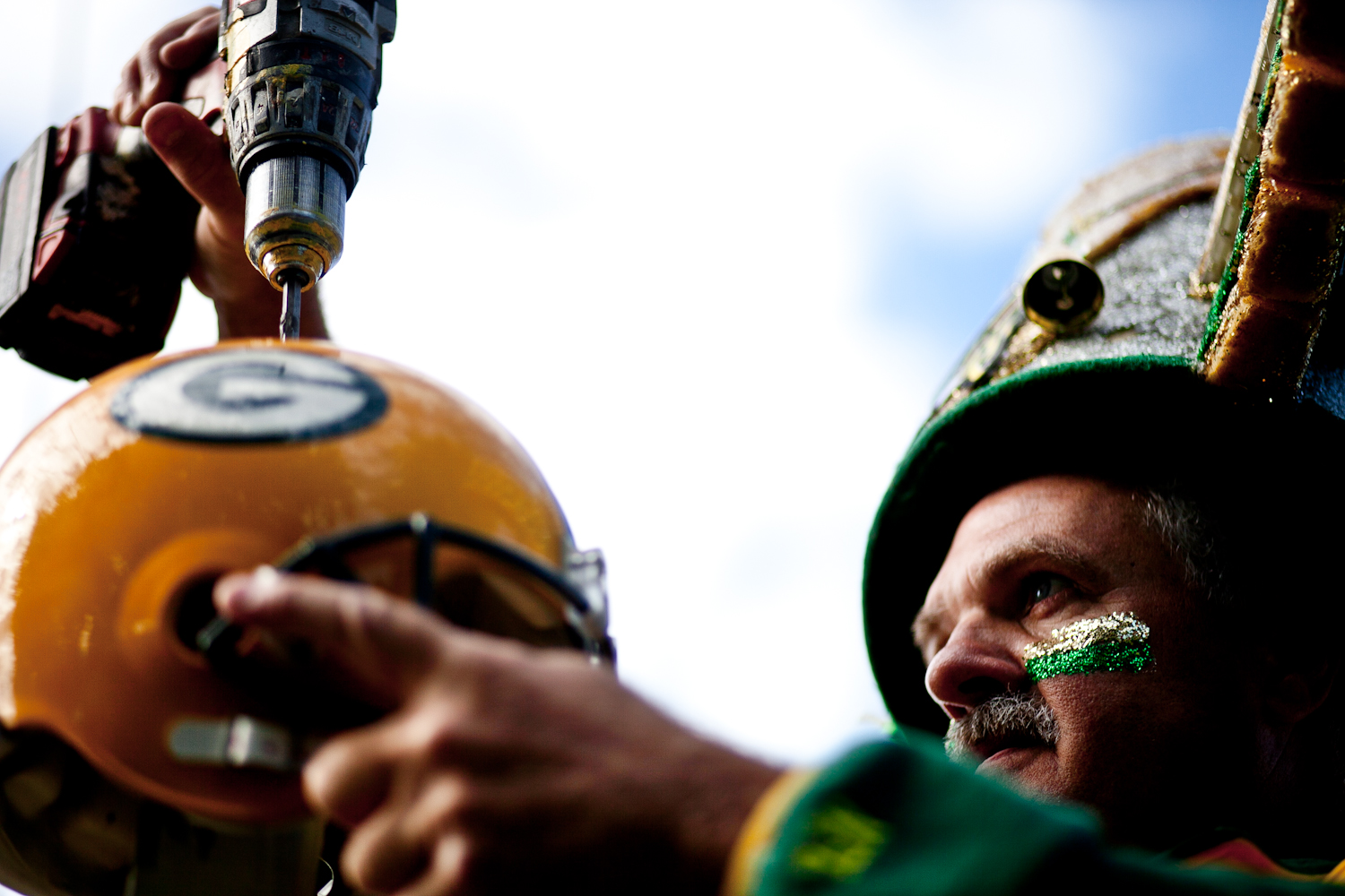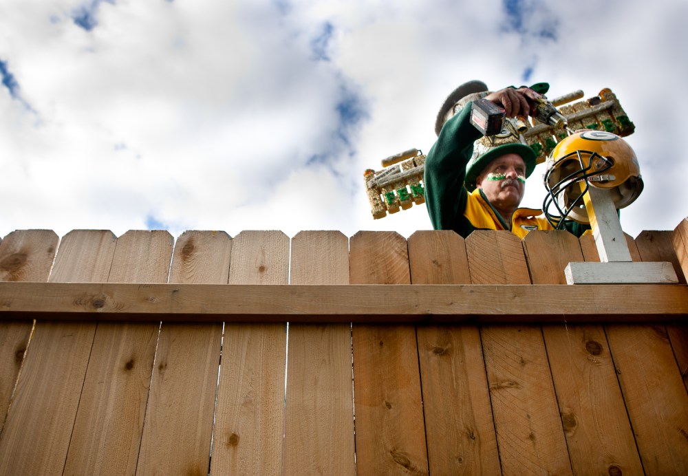 The best thing about being back at a daily newspaper is the constant variety that’s thrown at me—one minute I’m covering a football game, the next I’m touring a marijuana growing operation in the middle of the Northwoods of Wisconsin. And today I photographed a guy who’s been painting his fence with Packer slogans for the last ten years. Even if he is kind of a media whore (as my editor referred to him), it was still fun to shoot the assignment.