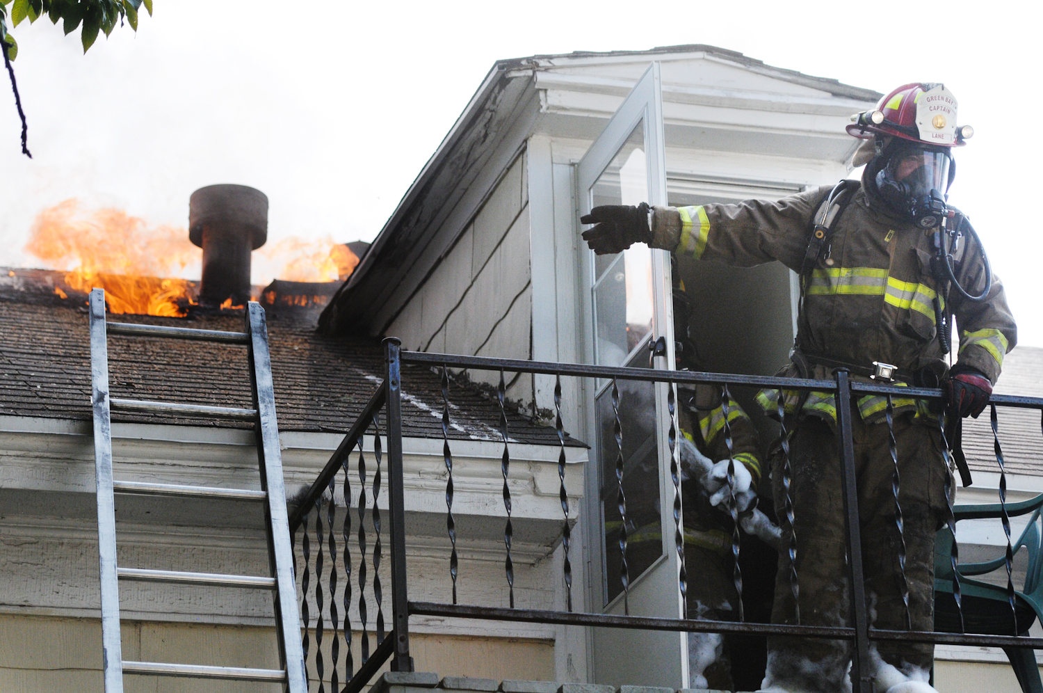 I thought my first day at the Green Bay Press Gazette would be full of paperwork and note-taking, but instead, on my way home for lunch, I photographed a house fire. I more or less stumbled across the fire after I saw a firetruck speeding down the road in the ongoing lane. I pulled a quick U-turn and decided to follow it, where it led me straight to the fire.