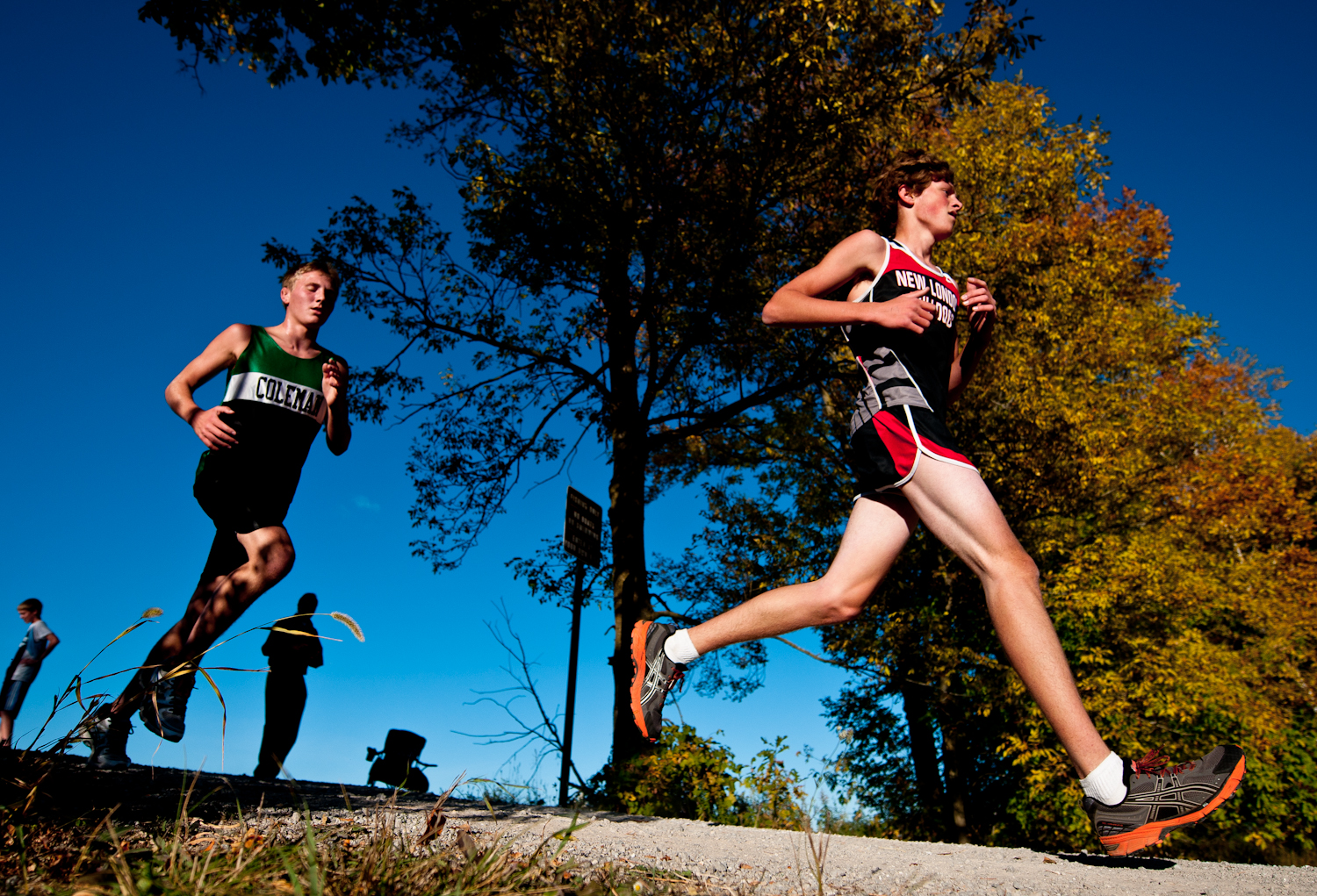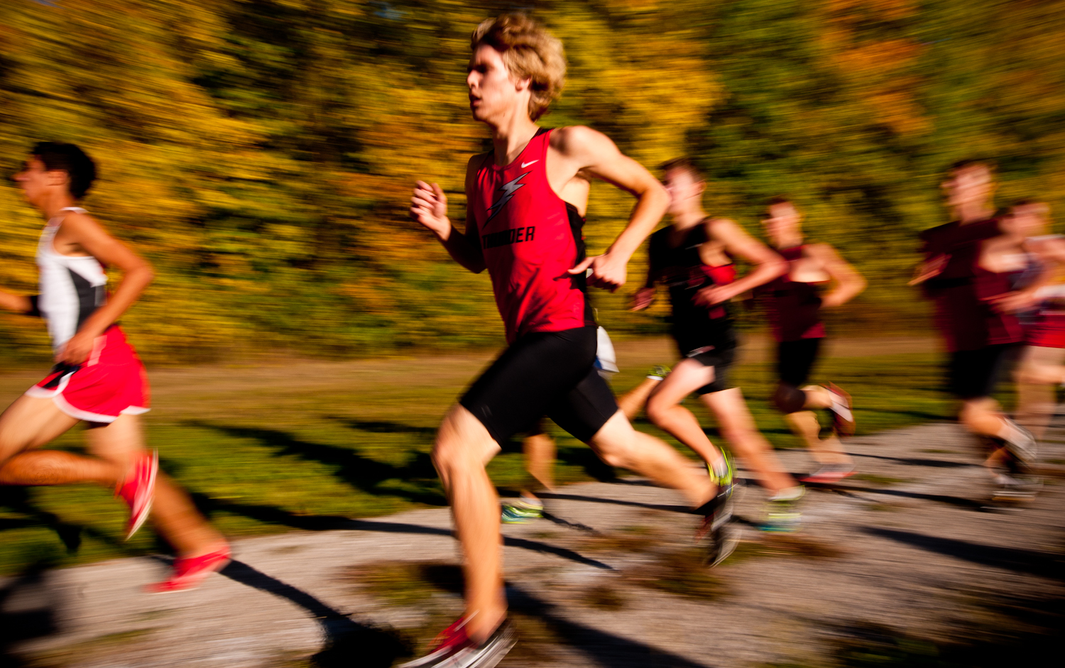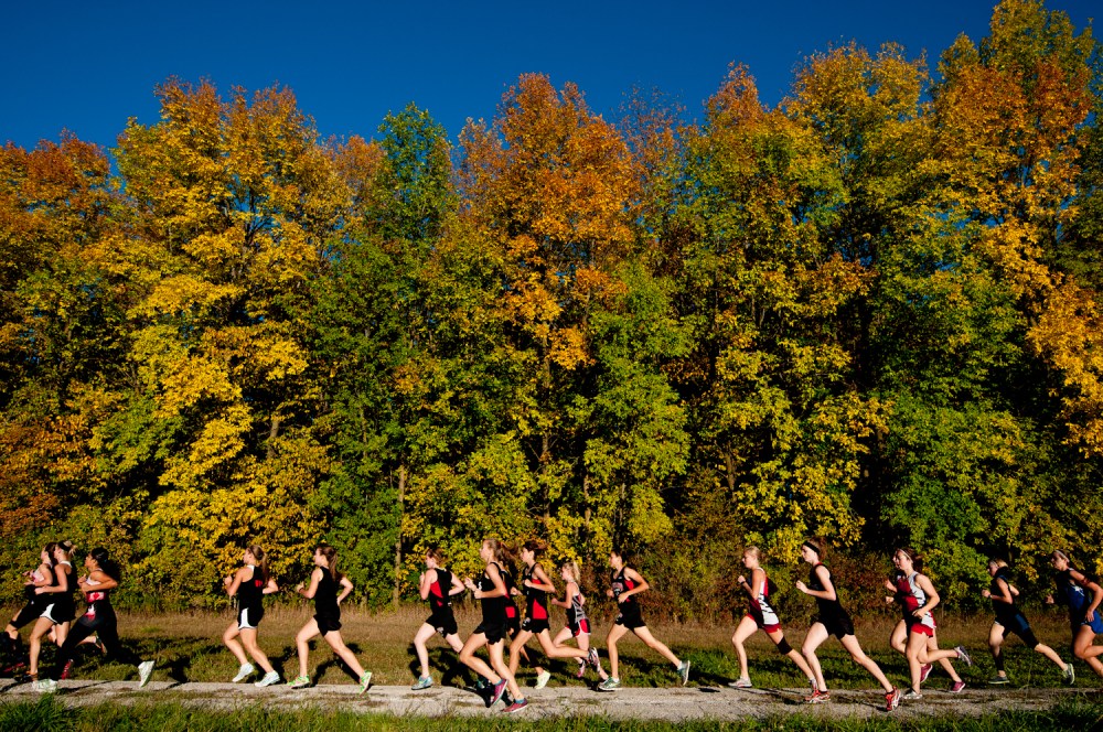 Covering a cross country meet yesterday evening felt like the photo-planets had aligned just for me: clear blue skies, fiery fall leaves, warm sunshine and low 60s temperatures. I wish I hadn’t been on deadline, I would have stuck around for at least another hour just shooting. It was that good.