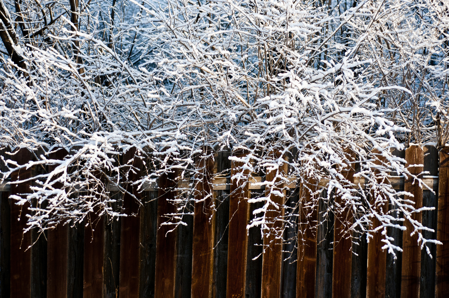 Snow-covered trees hang over a fence near Riverside Drive in Allouez on December 10, 2012. Lukas Keapproth/Press-Gazette Media