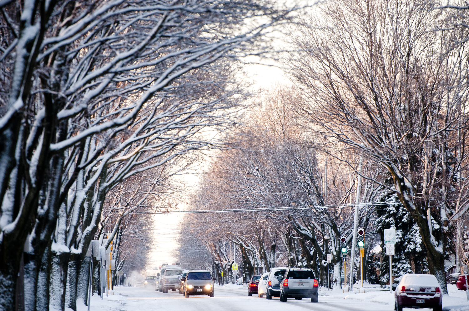 Cars pass on Oneida Street through the snow in Green Bay, Wis., December 10, 2012. Lukas Keapproth/Press-Gazette Media