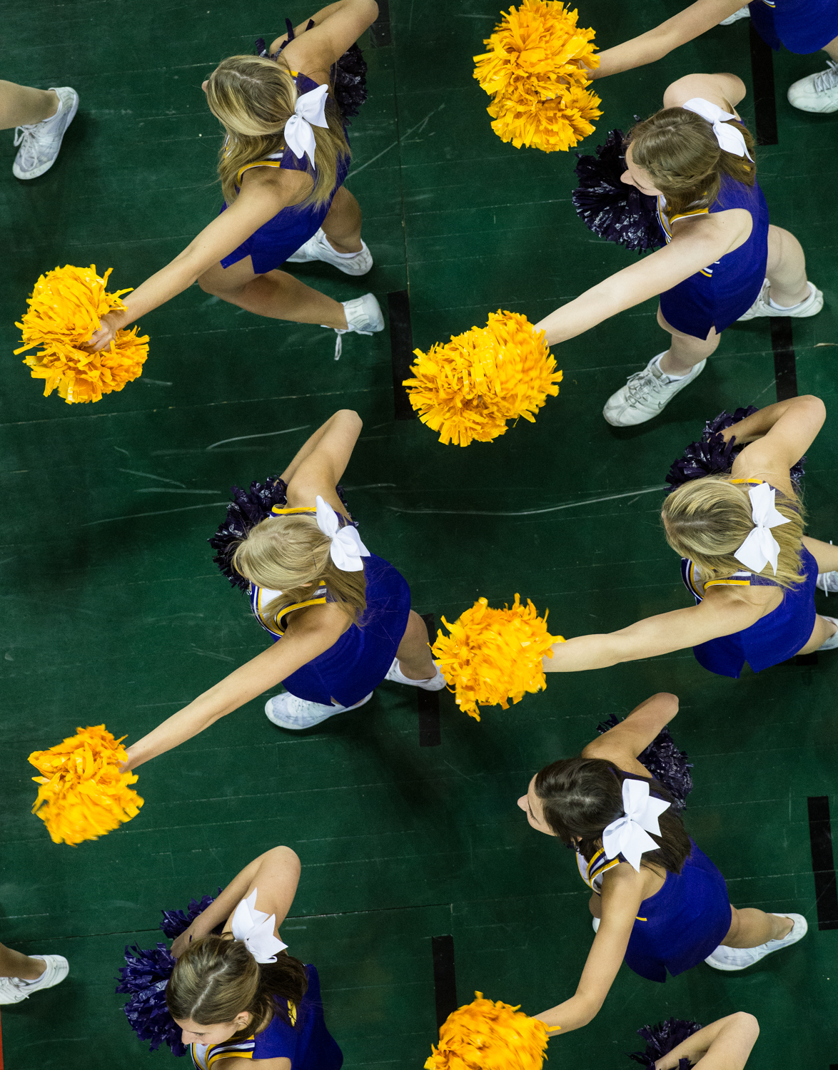 New Berlin cheerleaders perform during the WIAA Division 2 Girls State Basketball semifinal game at the Resch Center in Ashwaubenon, Wis., on Friday, March 15, 2013. Lukas Keapproth/Press Gazette Media