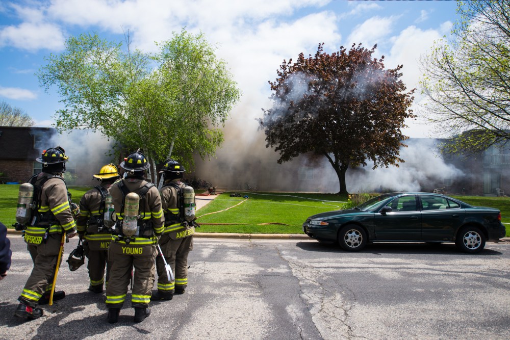 Yesterday around 11 I got word of an apartment complex fire in the nearby town of Allouez. For about the first hour or so, firefighters seemed to have the fire under control—they even had residents come back to the complex saying it was nearly under control—until they placed fans inside to force out the smoke. Soon, after the increased ventilation fueled the fire, the apartment was up in flames and the fire department wasn’t so keen on how close I was standing to the blaze.