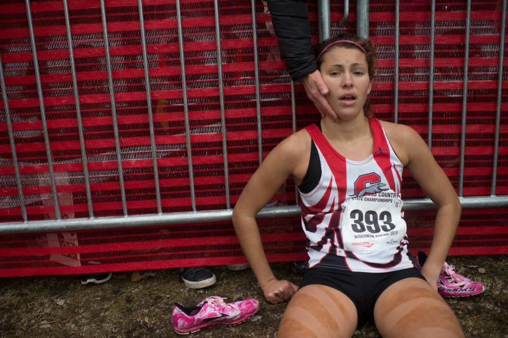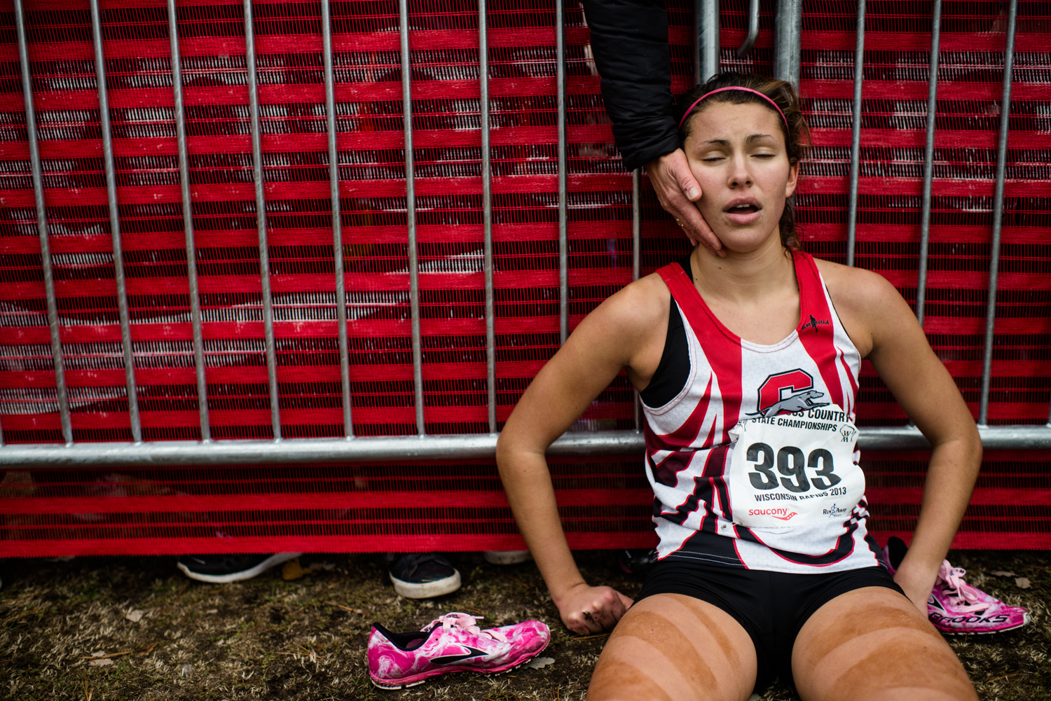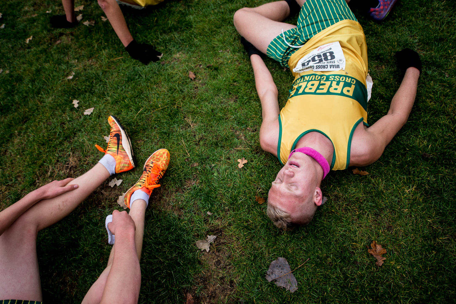 While I’ve shot a number of cross country meets, I’ve never covered the state tournament. I knew that many of these runners literally pass out/collapse/puke at the finish line, so I made a mental note to be sure to get over to the finish line instead of just shooting what end up being, essentially, mugshots of the runners we need for stories.