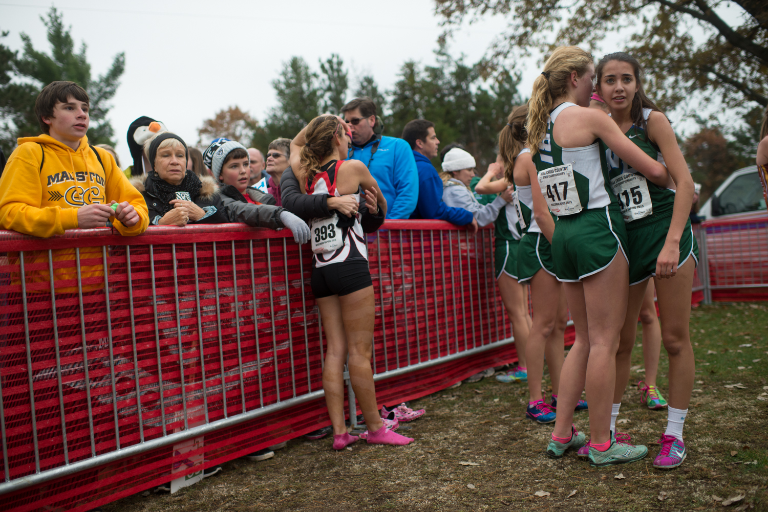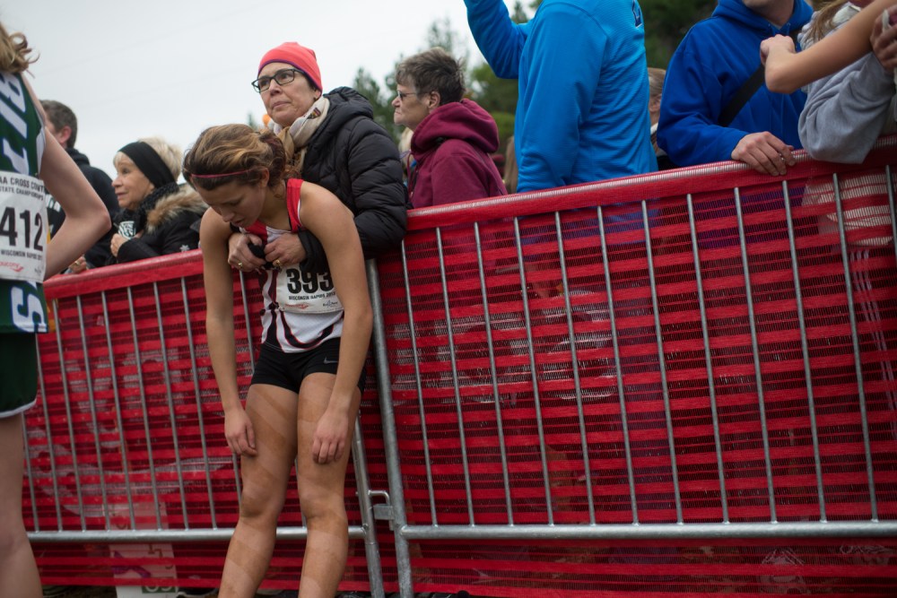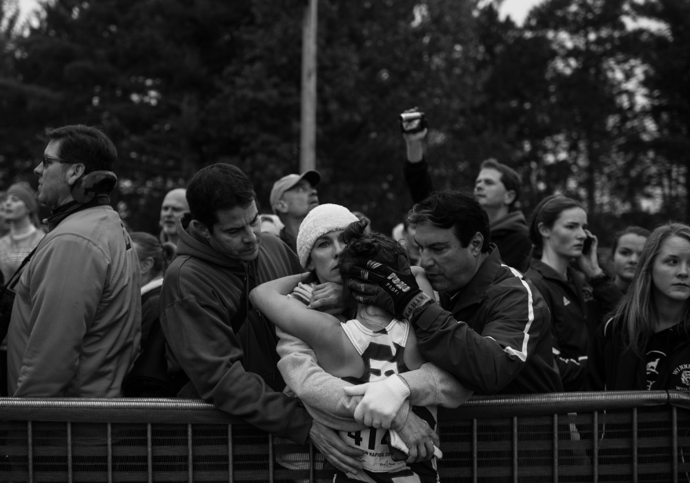 I got a little closer for a nice moment between one runner and her parents as they try to console her.