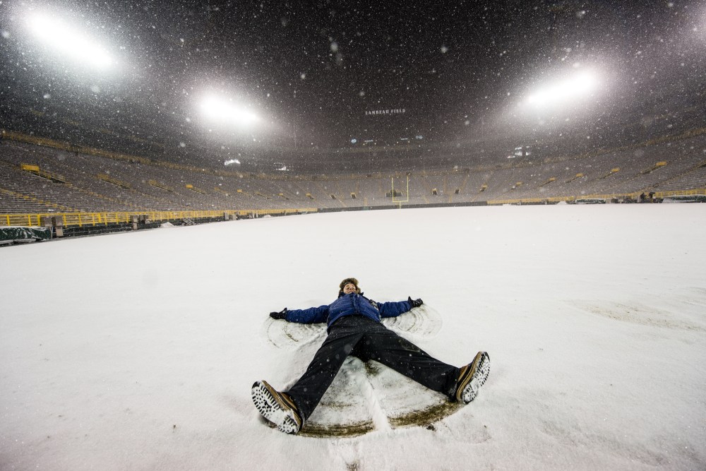 Growing up, the thought of just attending a snowy game at Lambeau would have been a dream come true. Even though my awe of walking into Lambeau Field has dissipated since I’m there multiple times a week, I still took some time to mentally absorb my surroundings while snow flurries whipped around the stadium. It was pretty cool.