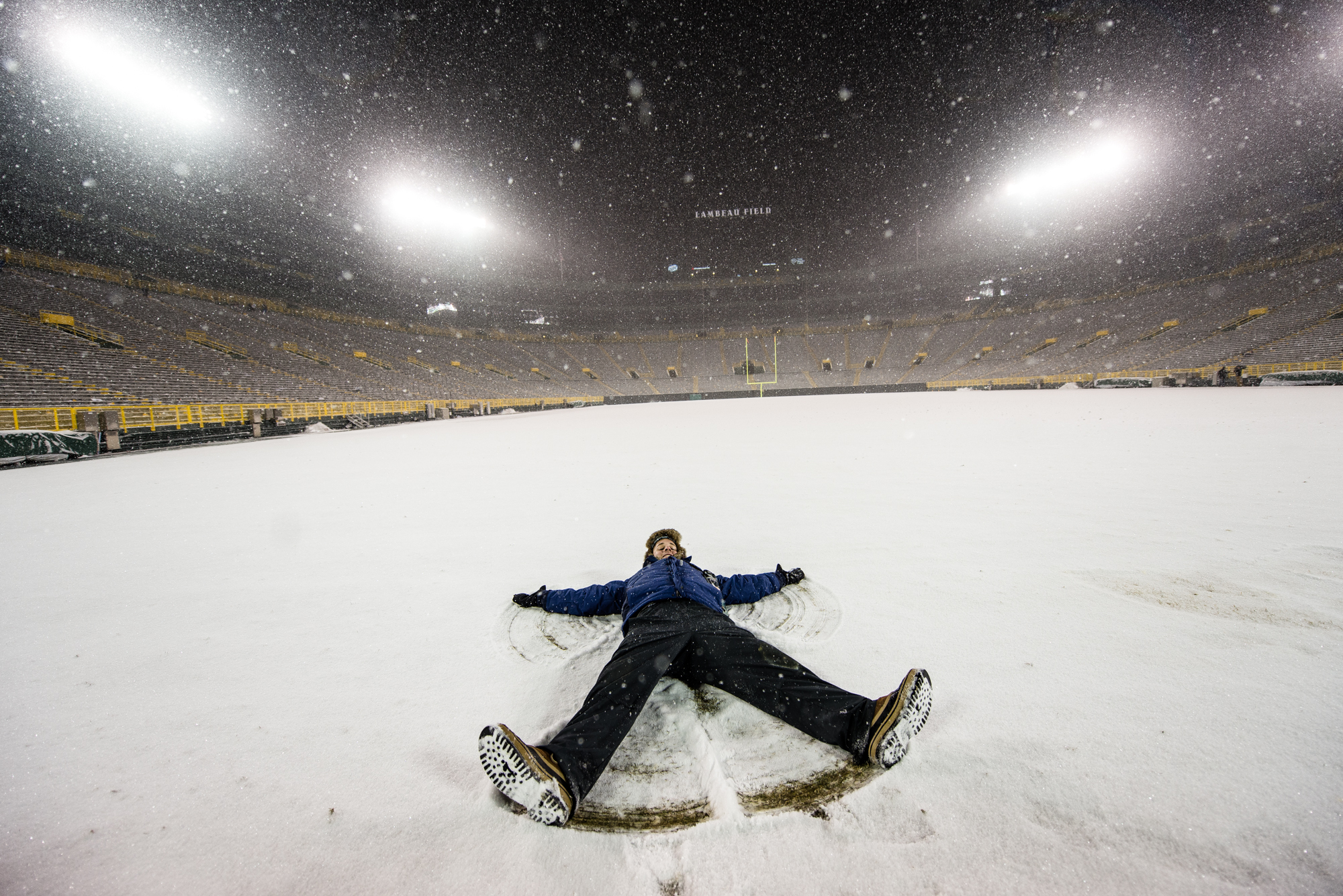 The most disappointing part was that the snow really started coming down after the game. It would have been like shooting in a snow globe. At least I got to do some snow angels on the field.