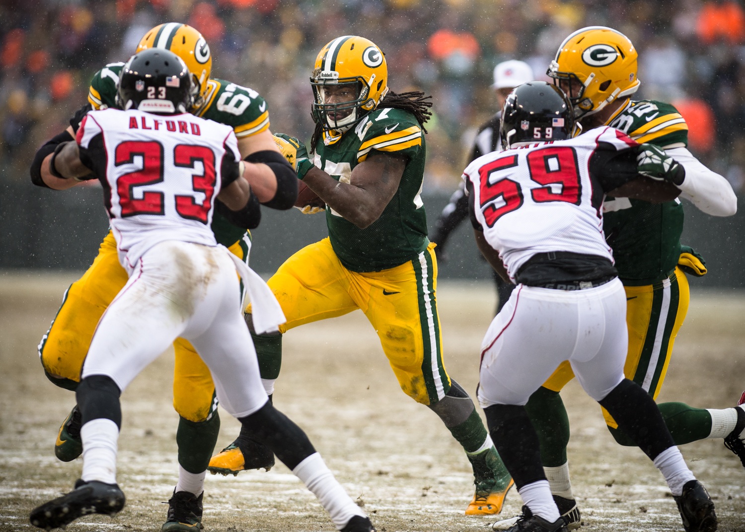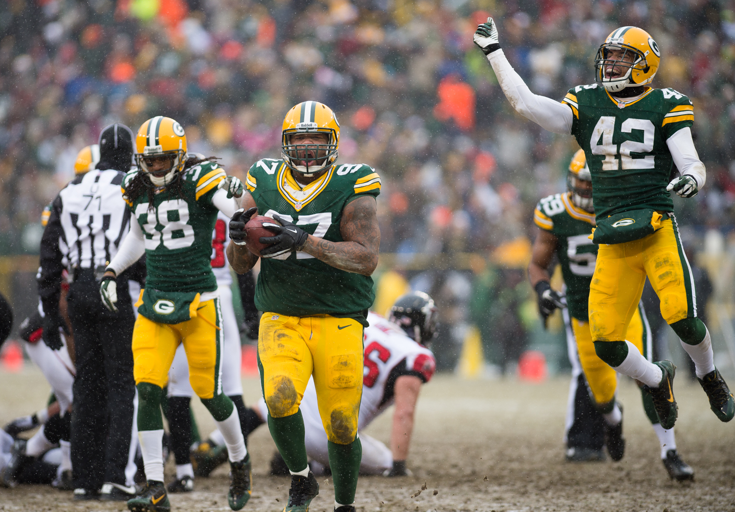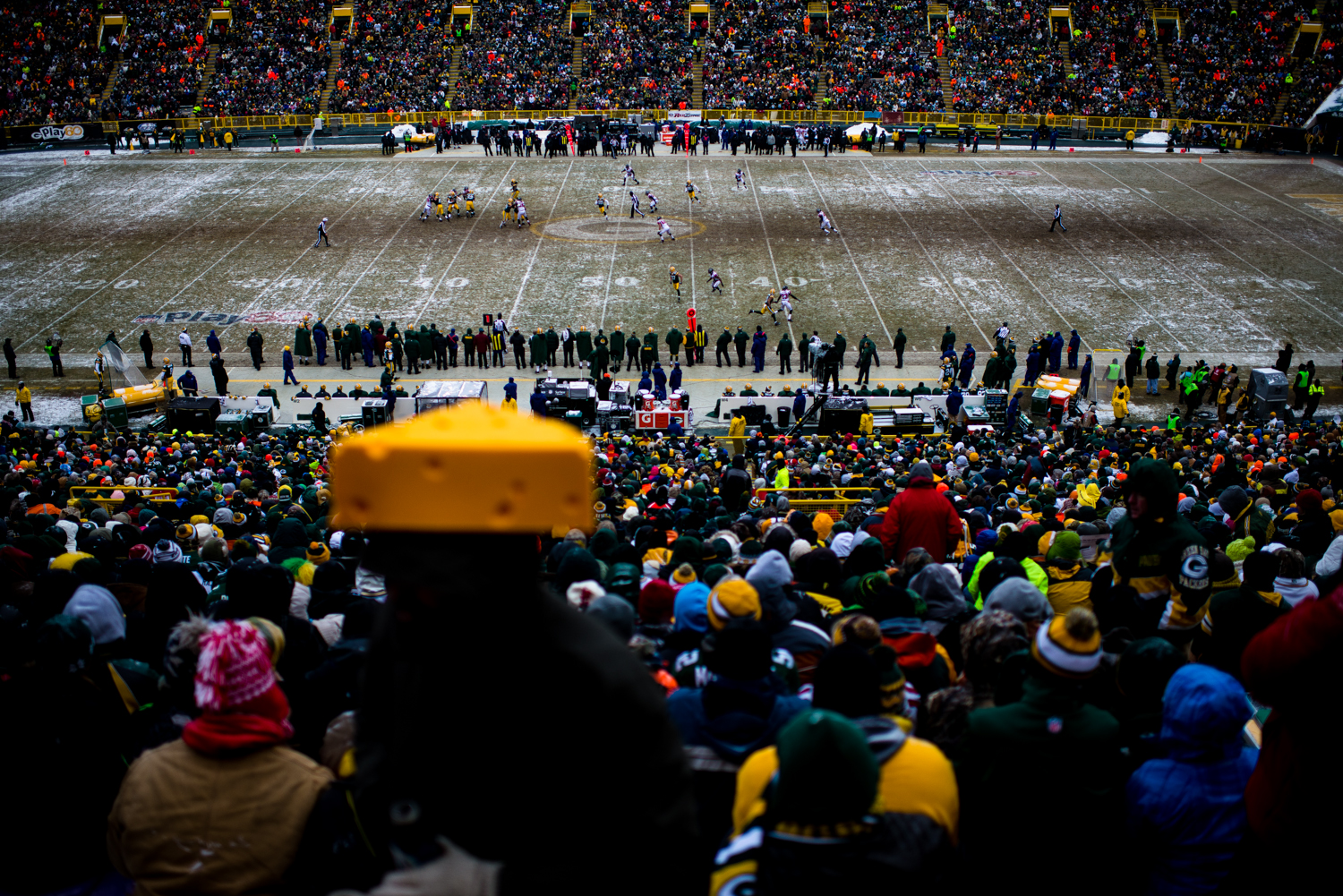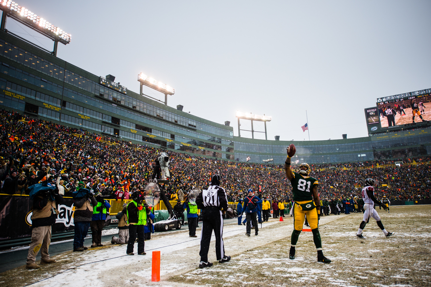 Growing up, the thought of just attending a snowy game at Lambeau would have been a dream come true. Even though my awe of walking into Lambeau Field has dissipated since I’m there multiple times a week, I still took some time to mentally absorb my surroundings while snow flurries whipped around the stadium. It was pretty cool.