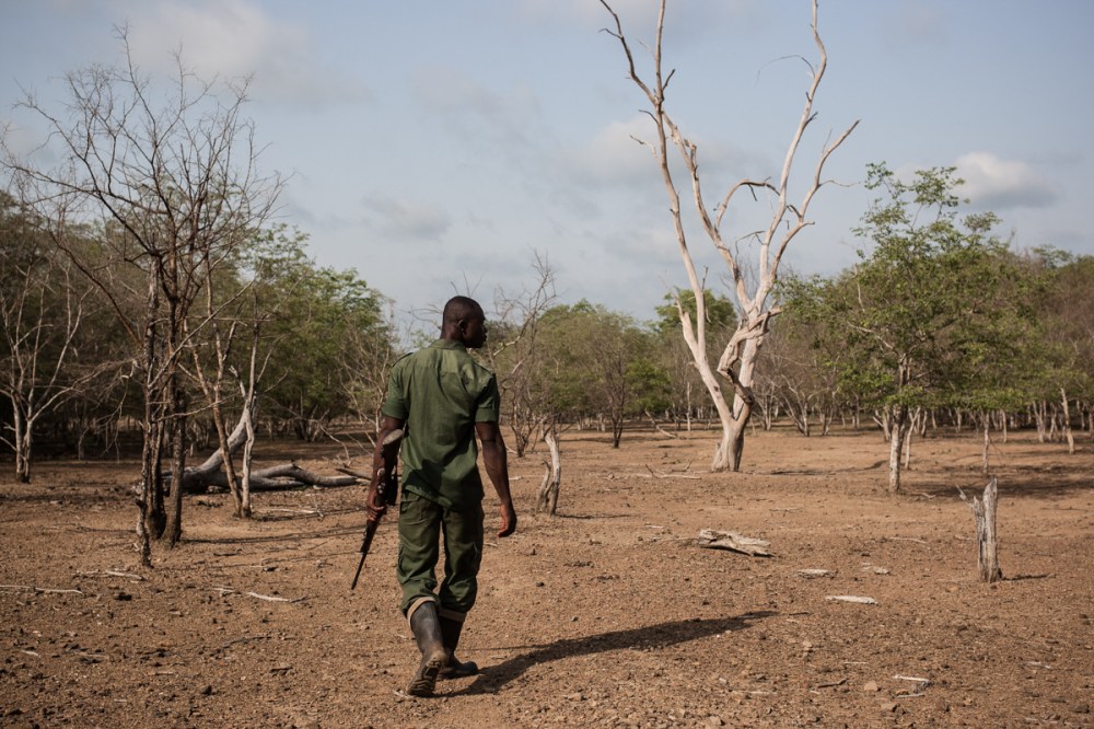 I was also obsessed with the uniform the safari guide wore last time but could never get a good shot. Knowing we were going to walk through an old lake bed on the next trip, I put a little distance between the guide and the group to grab this shot (which looks way more dangerous than reality).