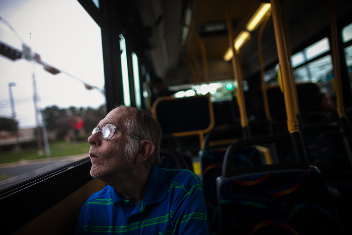 Behind Motley sits Jimmy Davis, who commutes an hour and a half in the morning and two hours in the evening to get to his job at the Austin Lighthouse for the Blind in South Austin. Davis usually doesn’t ride the Route 19, but was forced to transfer after his regular bus broke down.