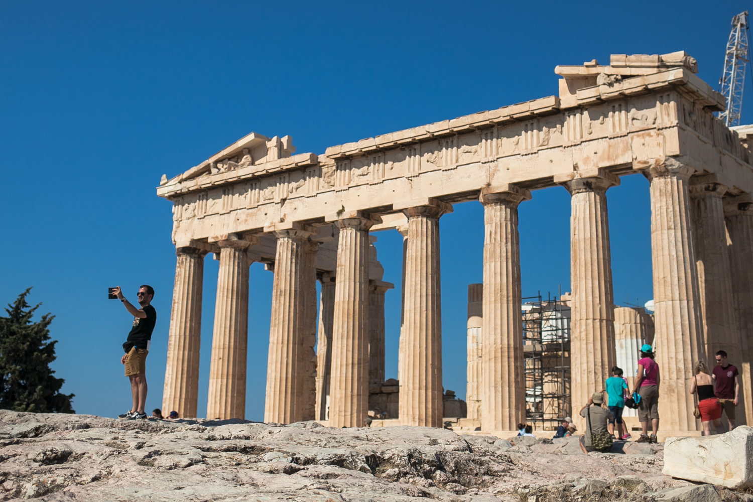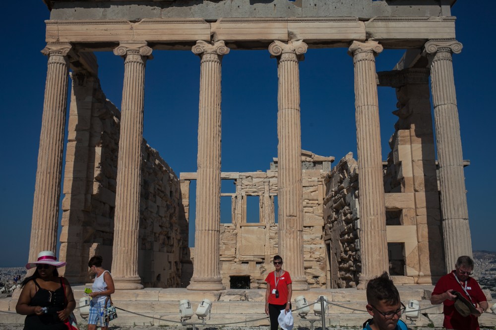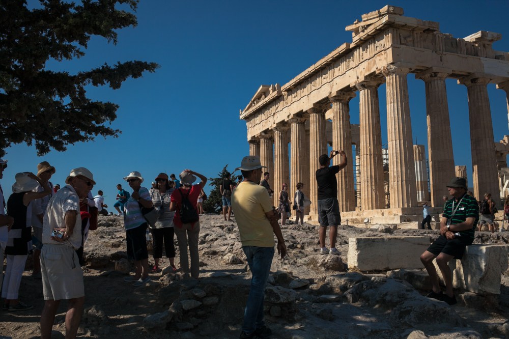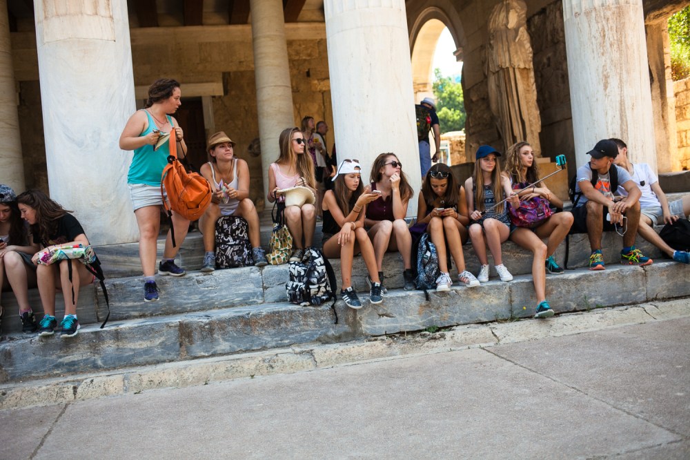 A woman in high wedges, short skirt and crop top carefully traipses over rocky terrain outside the Theatre of Dionysus in Athens, Greece. The mild 8 a.m. temperatures keep her hair and makeup impeccably in tact despite the vigorous climb. When she reaches the railing overlooking the theatre and raises her selfie-stick high above her head, it’s clear she’s executed a perfect selfie.